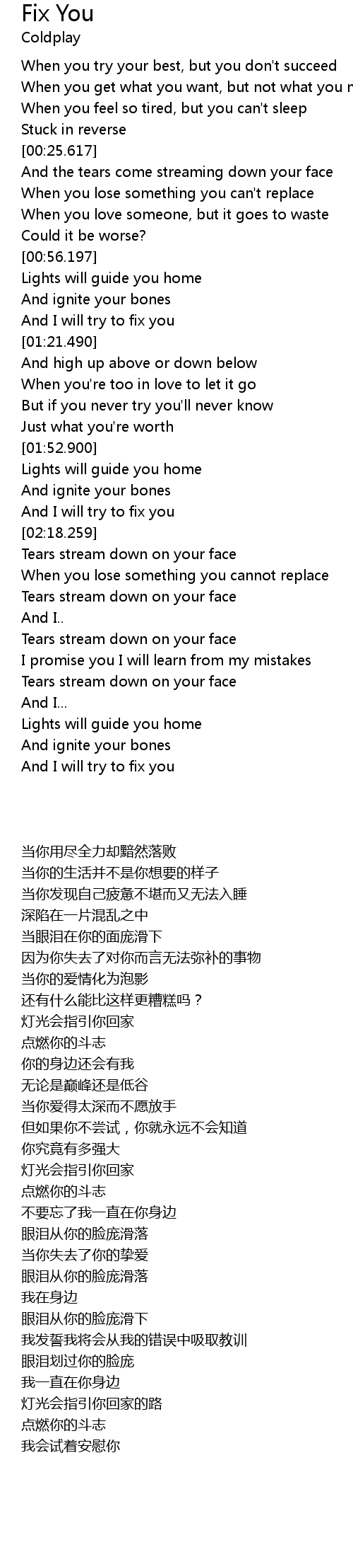 And I will try to fix you |