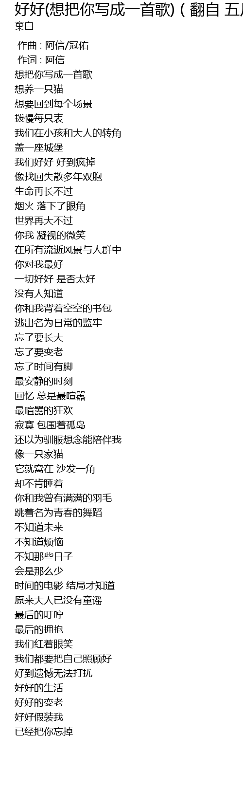 | Song | 好好(想把你写成一首歌)(翻自 五月天) |