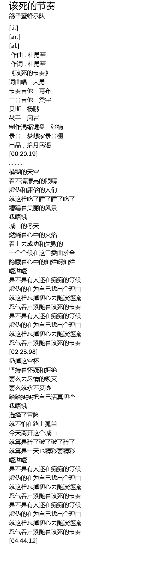| [04:07.380] | 忍气吞声紧随着该死的节奏 |