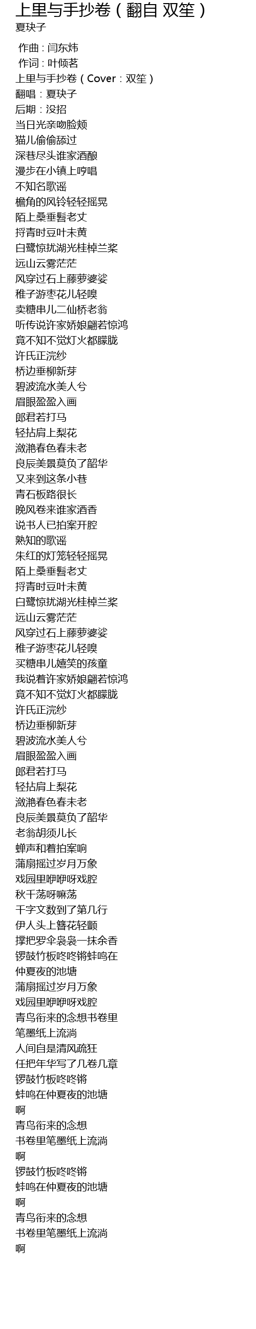 | [00:00.38] | 上里与手抄卷(Cover:双笙) |