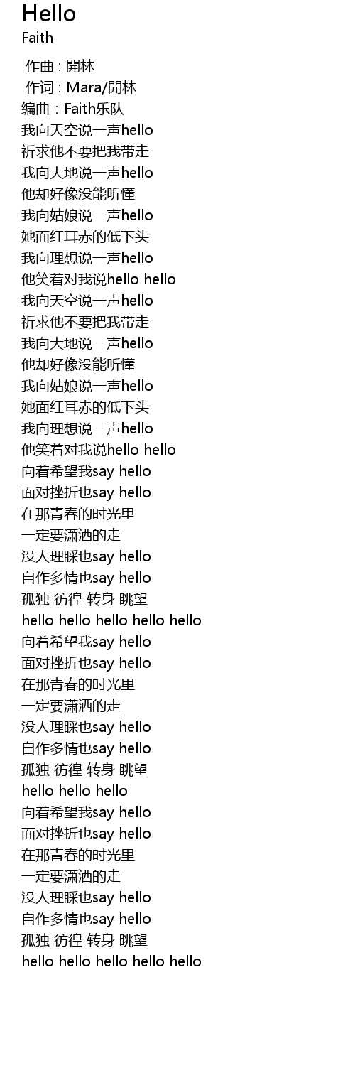 | [00:49.178] | 我向天空说一声hello |