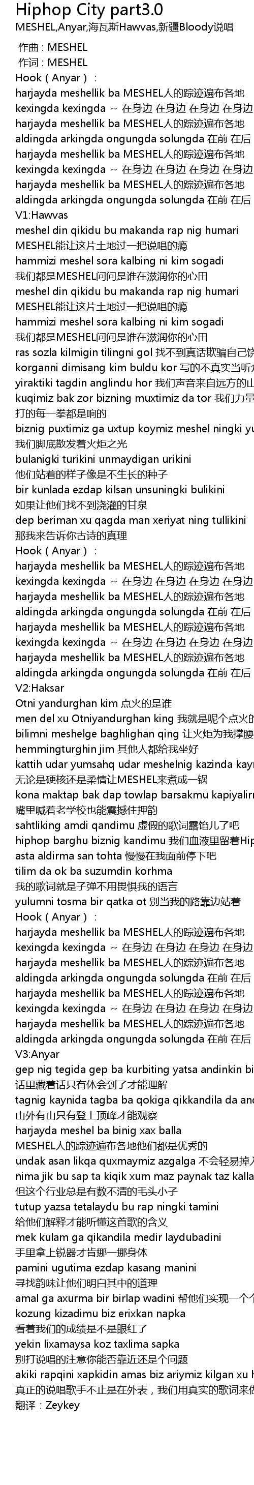 | [00:44.441] | meshel din qikidu bu makanda rap nig humari MESHEL能让这片土地过一把说唱的瘾 |