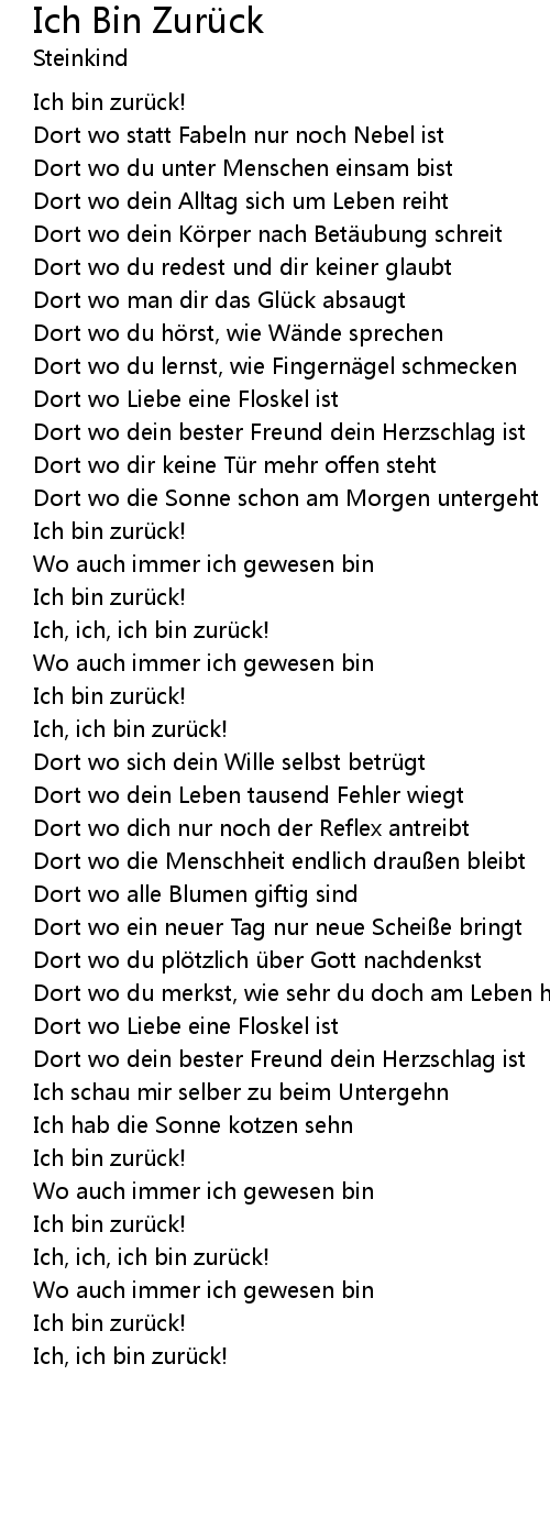 | Song | Ich Bin Zurück |