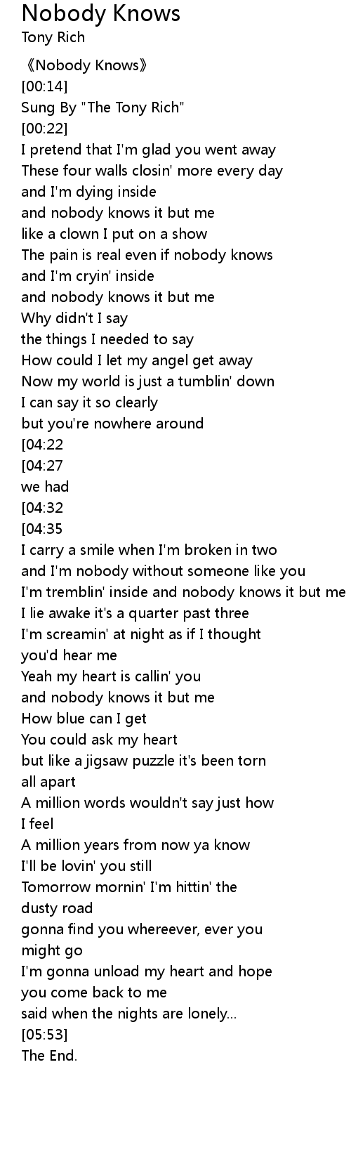 | [04:57][04:35][04:13][03:07][01:40] | and nobody knows it but me |