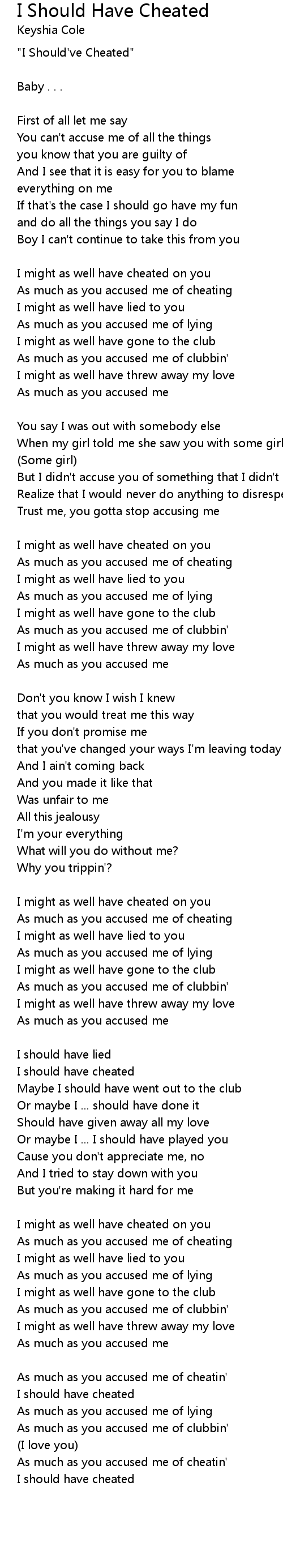 As much as you accused me of cheatin' |