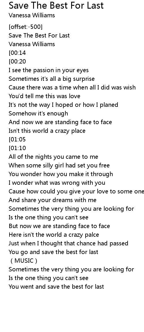 | Song | Save The Best For Last |