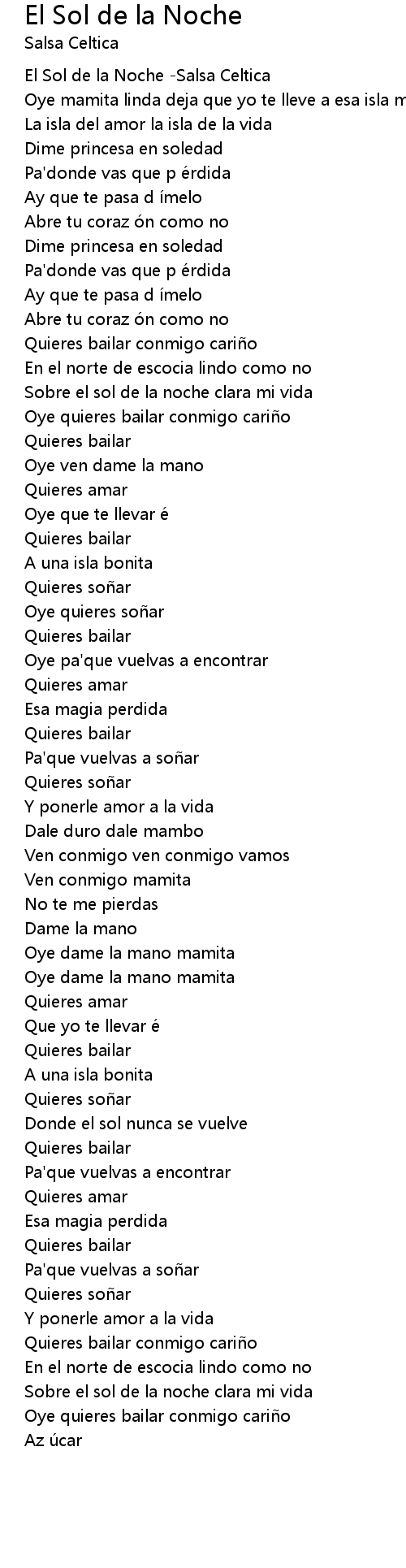 | [00:00.00] | El Sol de la Noche Salsa Celtica |