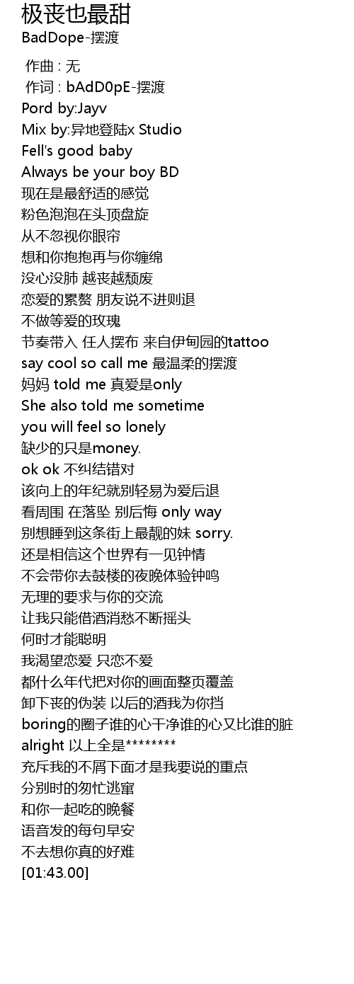 | [00:01.000] | 作词 : bAdD0pE-摆渡 |