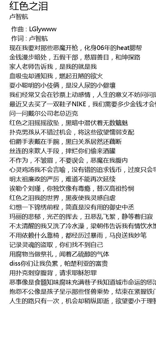 | [01:41.953] | 红色之泪我的世界,黑夜使我灵感自虐 |