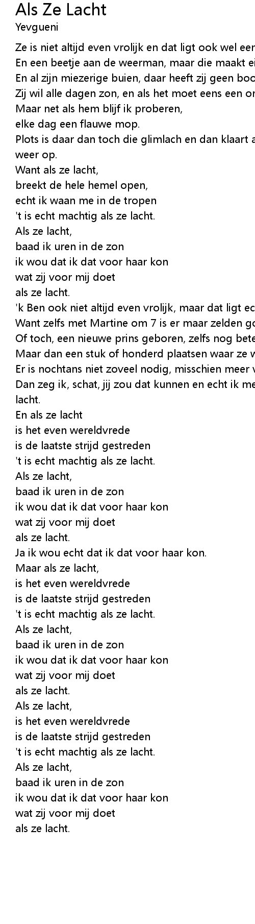 Dan zeg ik, schat, jij zou dat kunnen en echt ik meen, echt ik meen het maar zij lacht. |