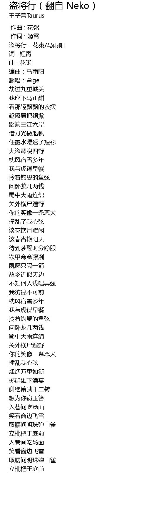 | [00:00.791] | 盗将行 - 花粥/马雨阳 |
