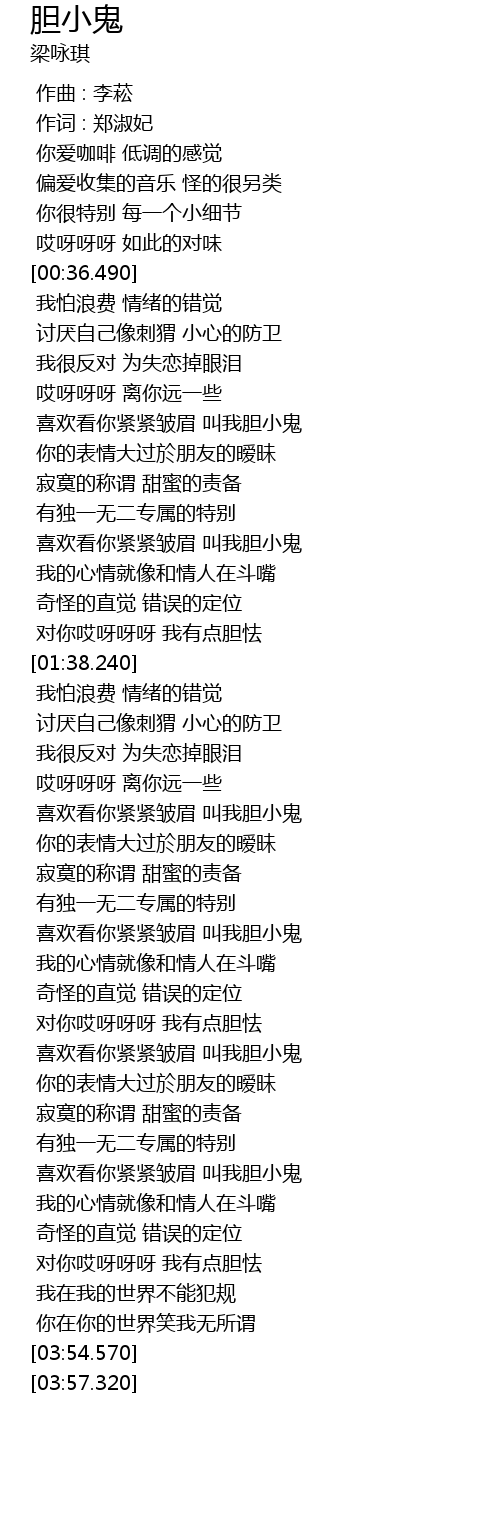 | [02:53.750] | 对你哎呀呀呀 我有点胆怯 |