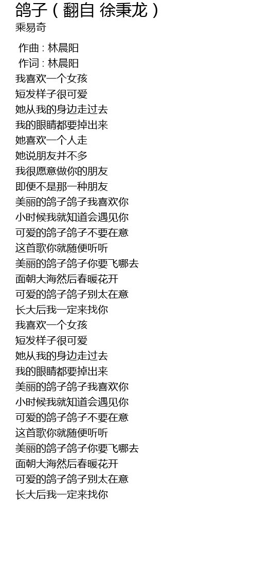| [01:05.880] | 可爱的鸽子鸽子别太在意 |