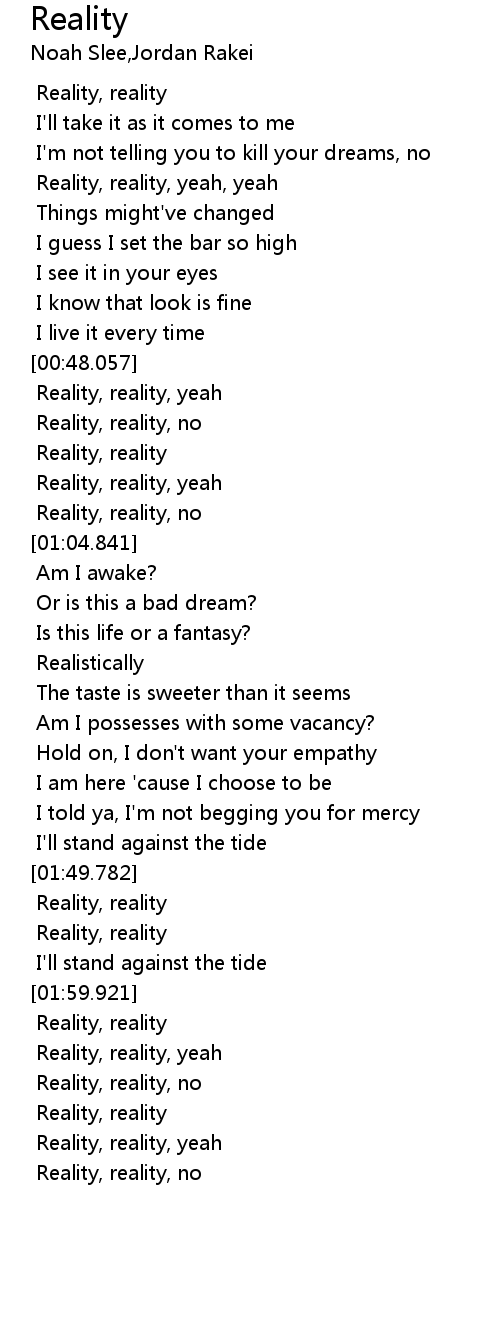 | [00:32.358] | Reality, reality, yeah, yeah |