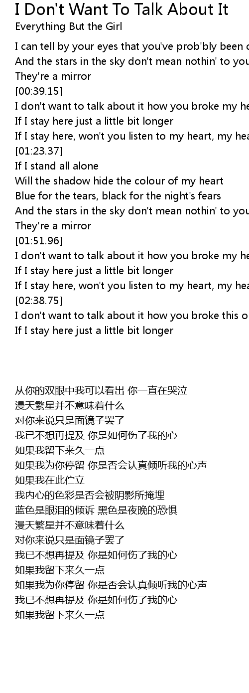 I can tell by your eyes that you've prob'bly been cryin' forever |