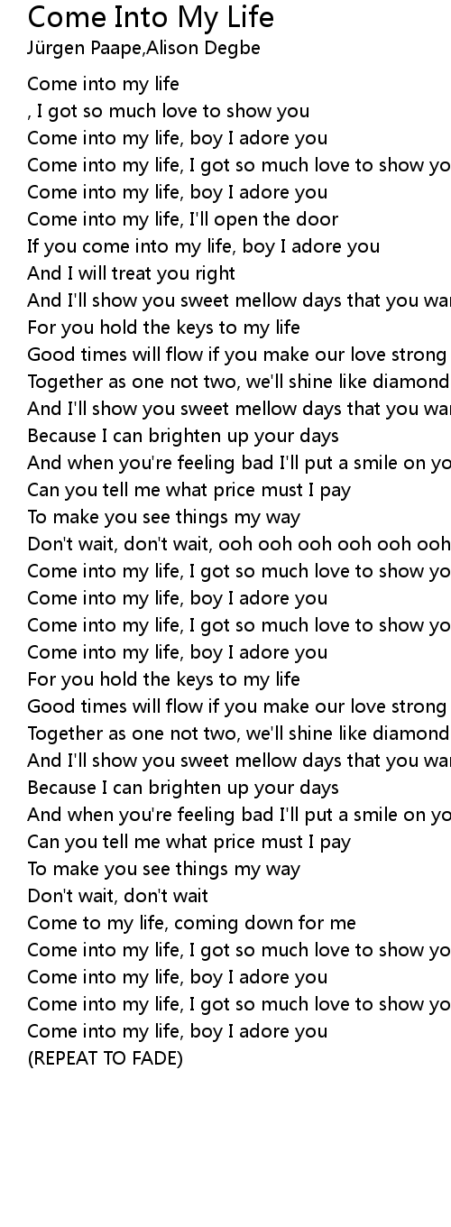 Come Into My Life Lyrics