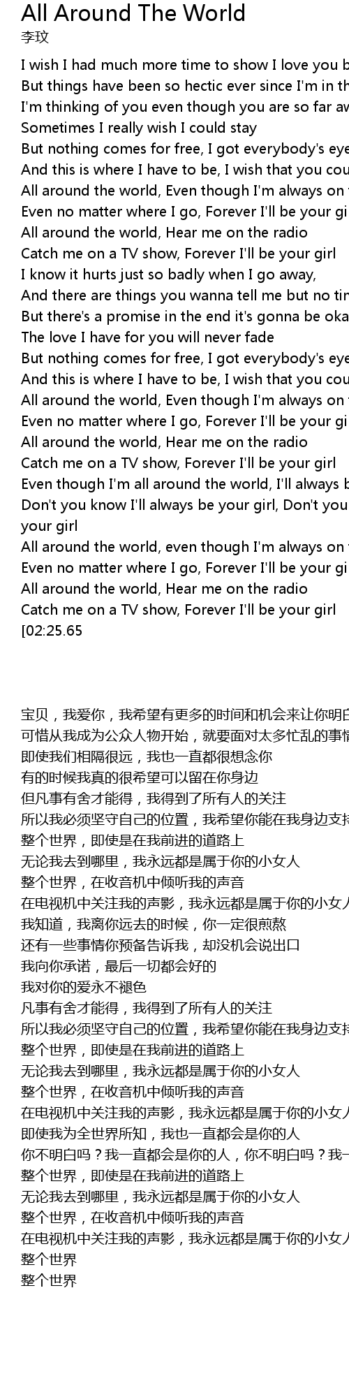 | [02:35.21][02:25.65] | All around the world |