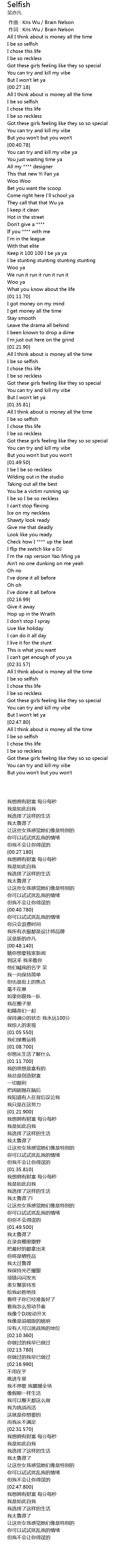 | [00:01.000] | 作词 : Kris Wu/Brain Nelson |
