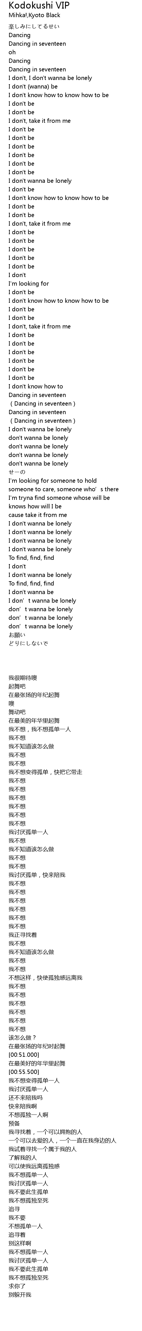 | [00:50.000] | Dancing in seventeen |