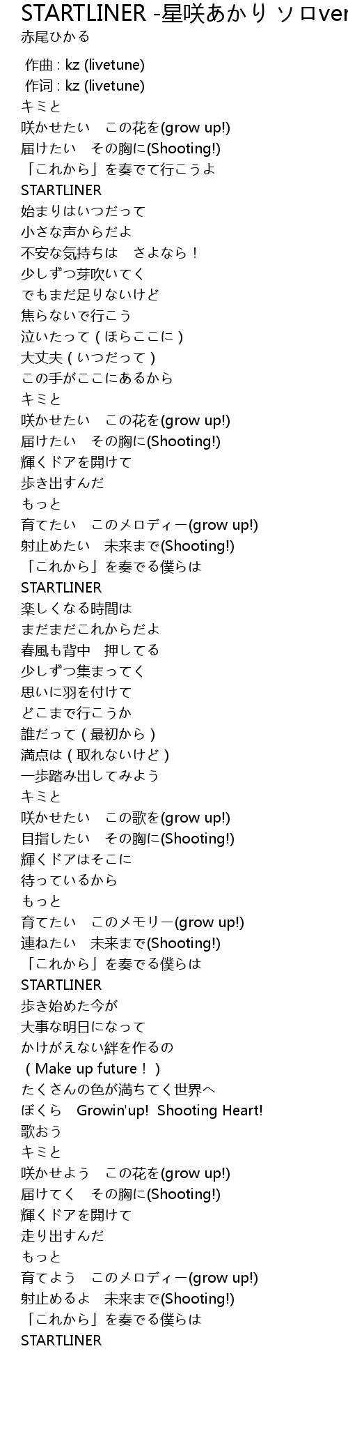 | [02:47.588] | 咲かせたい この歌を(grow up!) |