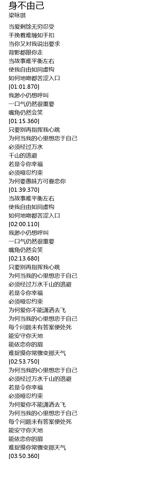 | [02:30.770] | 为何爱你不能潇洒去飞 |