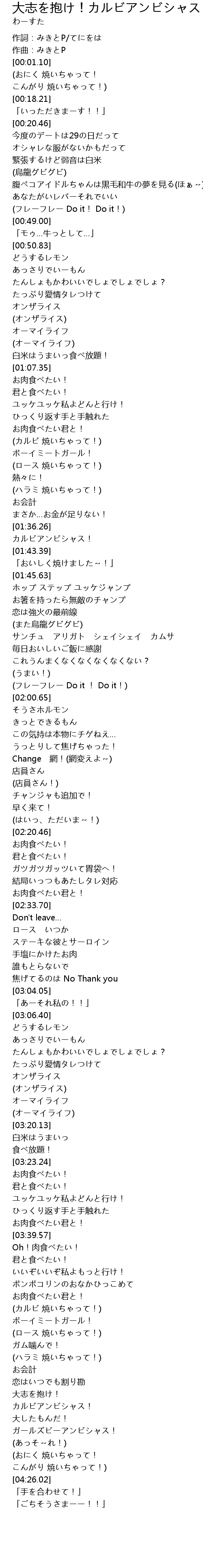 | [01:37.07] | カルビアンビシャス! |