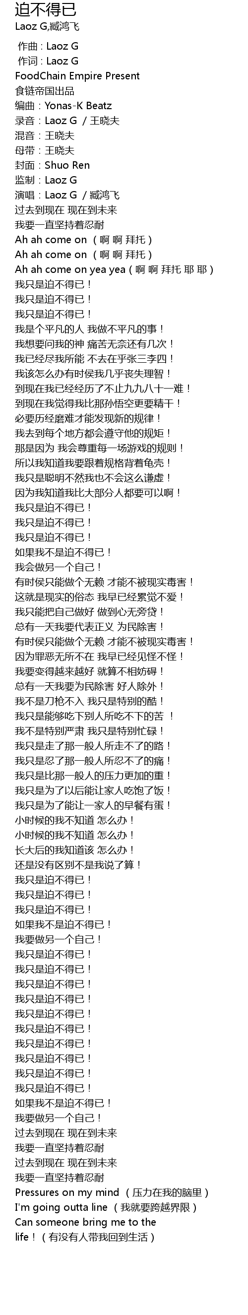 | [02:23.540] | wǒ zhǐ shì pò bù dé yǐ! |
