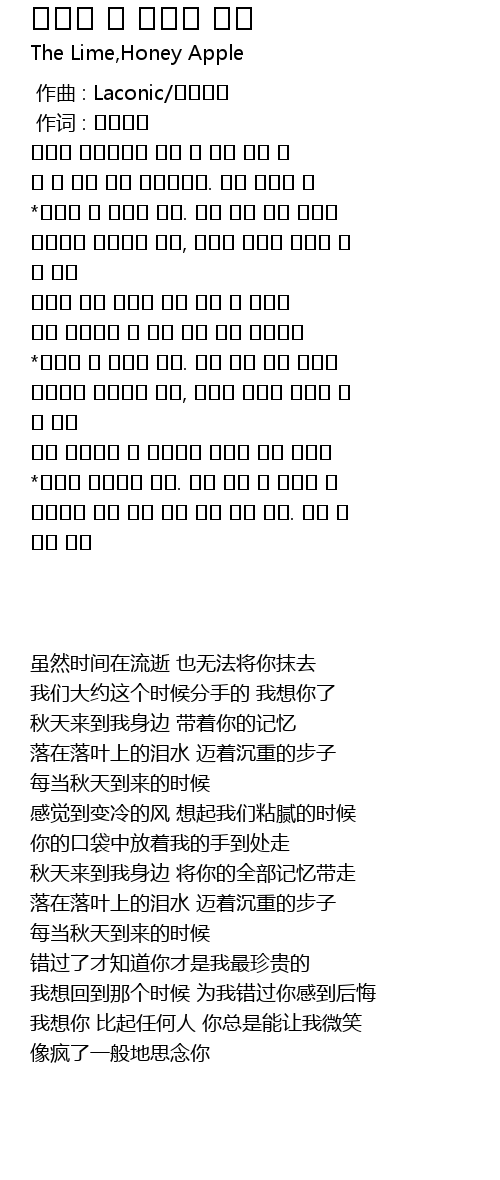 | [02:06.797] | 낙엽위로 떨어지는 눈물, 무거운 발걸음 가을이 올 때 마다 |