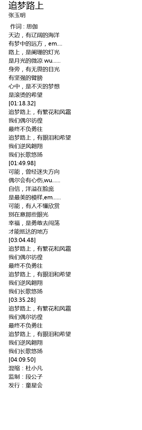 | [03:18.74] | 追梦路上,有眼泪和希望 |