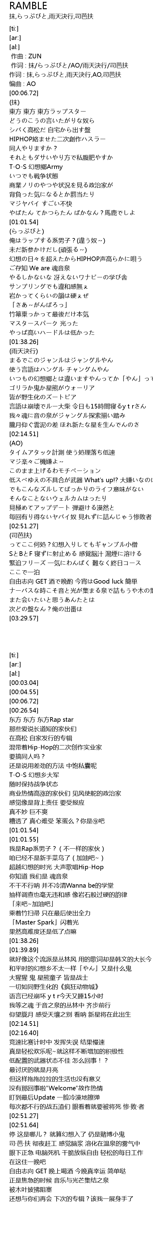 | [00:33.89] | 東方 東方 東方ラップスター |
