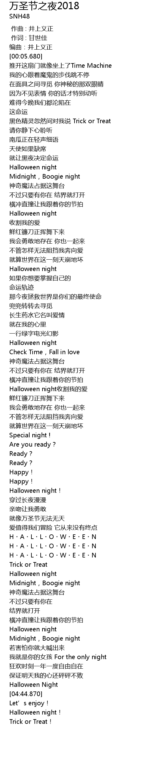 | [02:58.870] | Halloween night shōu gē wǒ de ài |