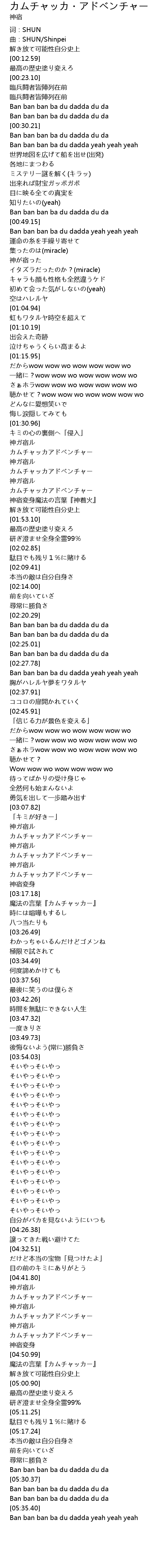 | [03:18.56] | 魔法の言葉『カムチャッカー』 |