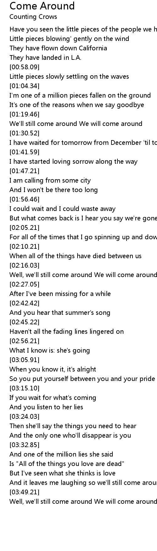 We'll still come around We will come around |