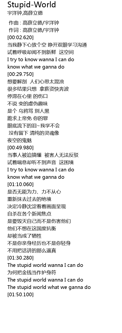 | [00:00.873] | 作词 : 高薛立德/宇洋钟 |