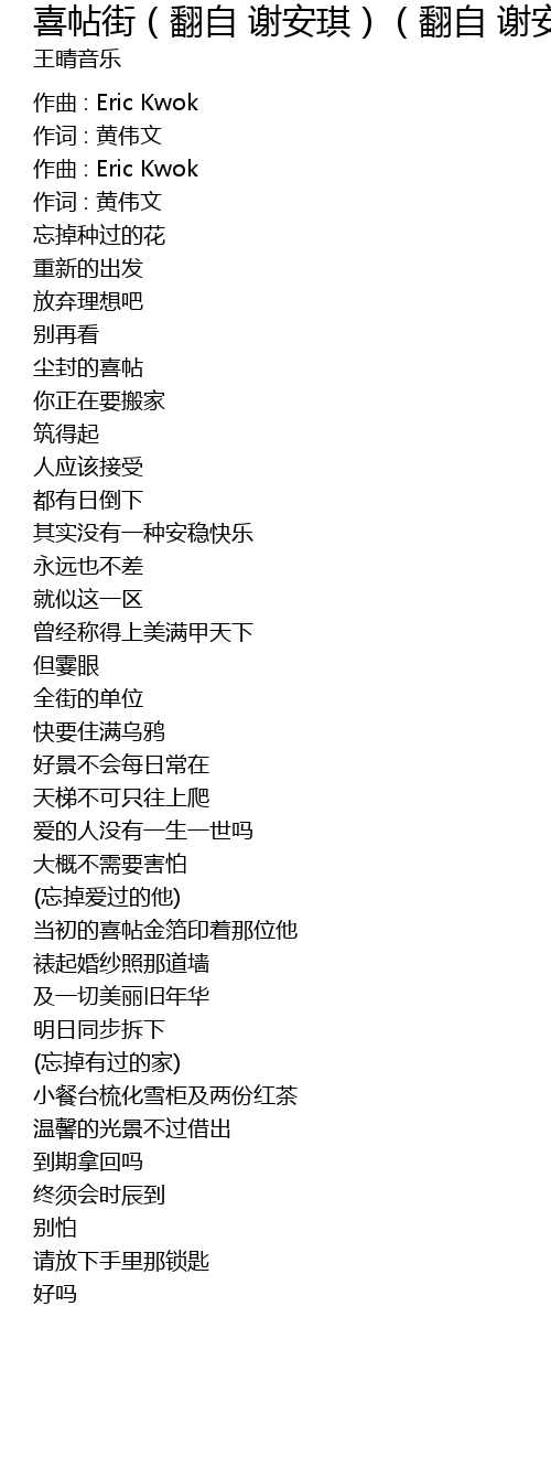 | Song | 喜帖街(翻自 谢安琪)(翻自 谢安琪) |