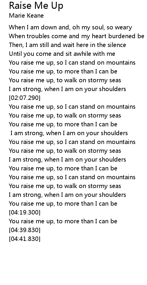 You raise me up, to more than I can be |