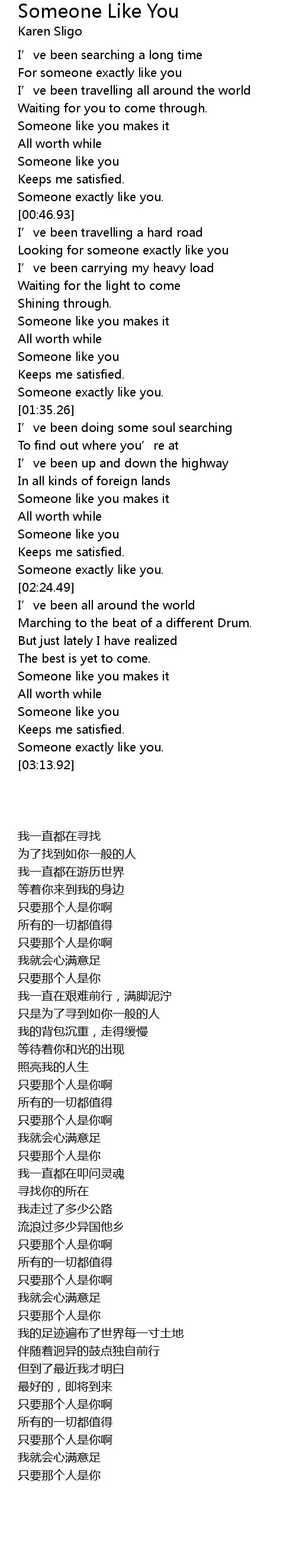 | [00:57.75] | Looking for someone exactly like you |