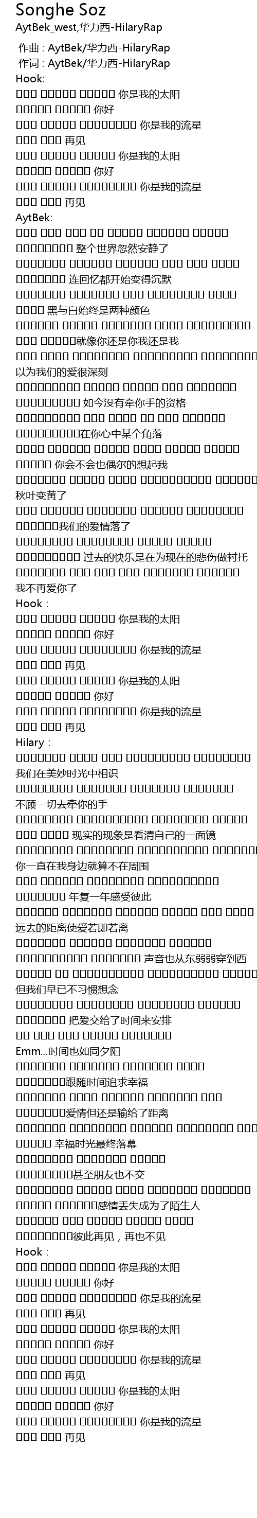 | [00:01.000] | zuò cí : AytBek huá lì xī HilaryRap |
