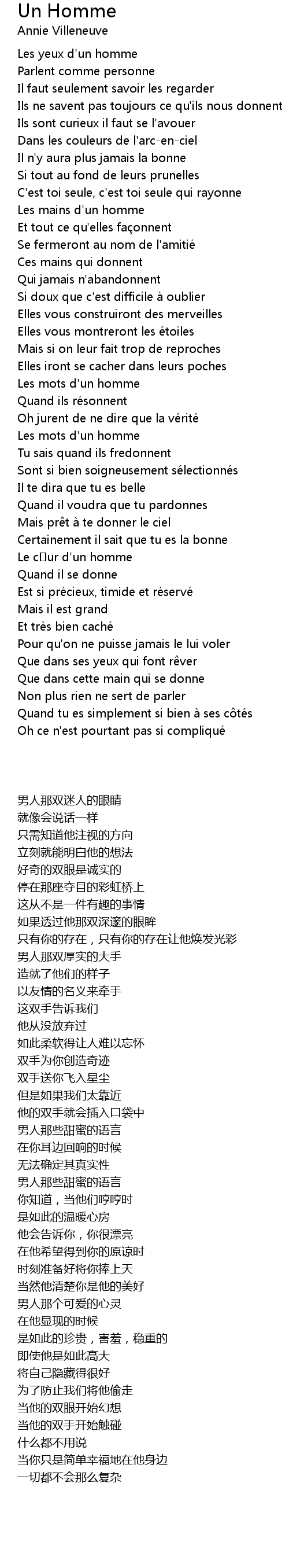 | Song | Un Homme |