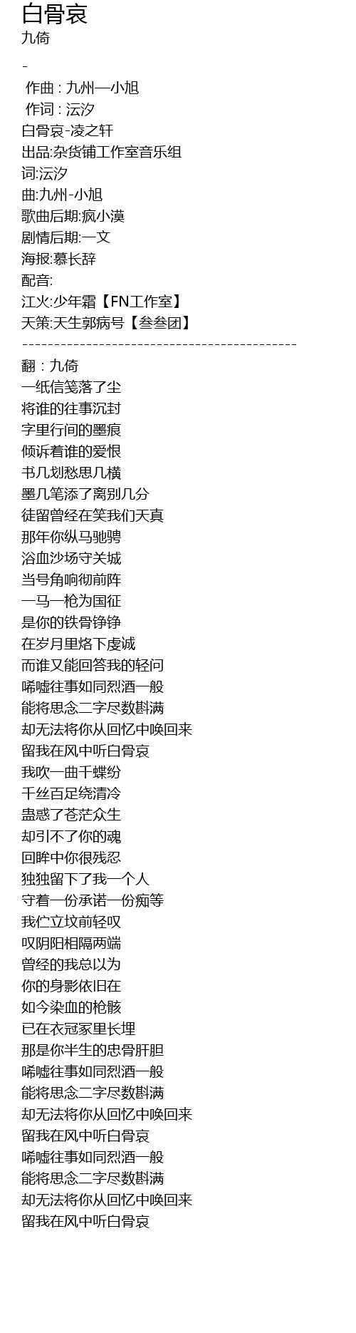 | [00:01.60] | 白骨哀-凌之轩 |