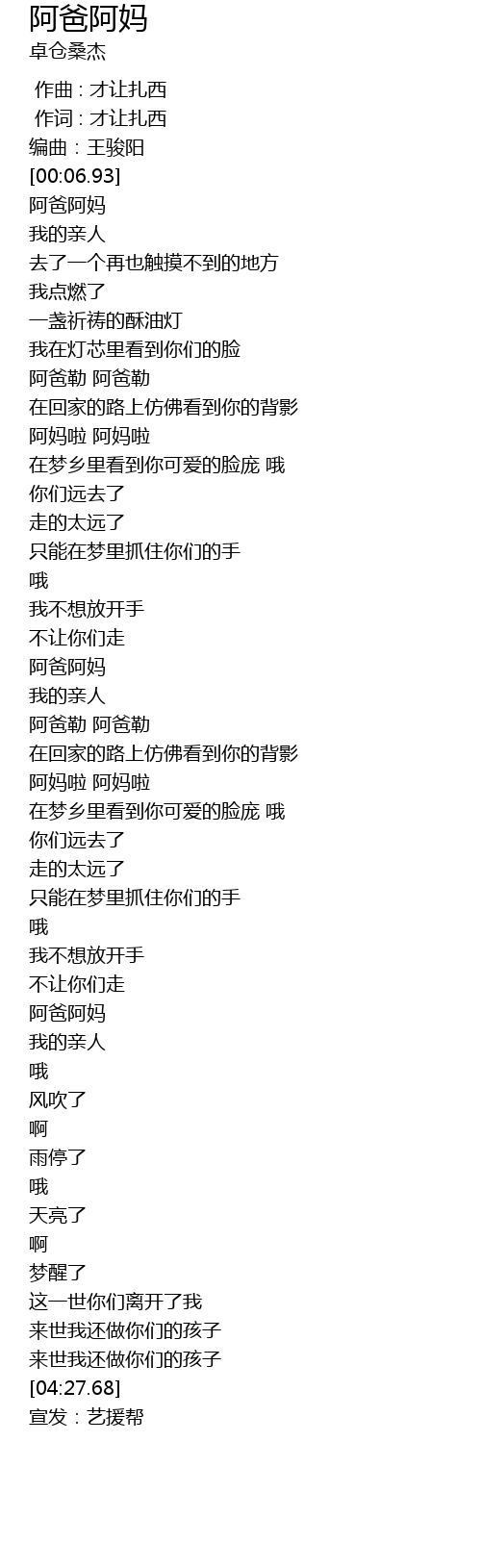 | [02:42.70] | 阿妈啦 阿妈啦 |