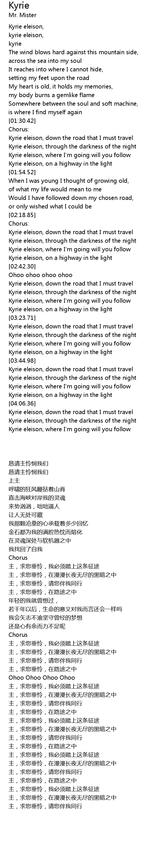 [02:20.26] Kyrie eleison, down the road that I must travel