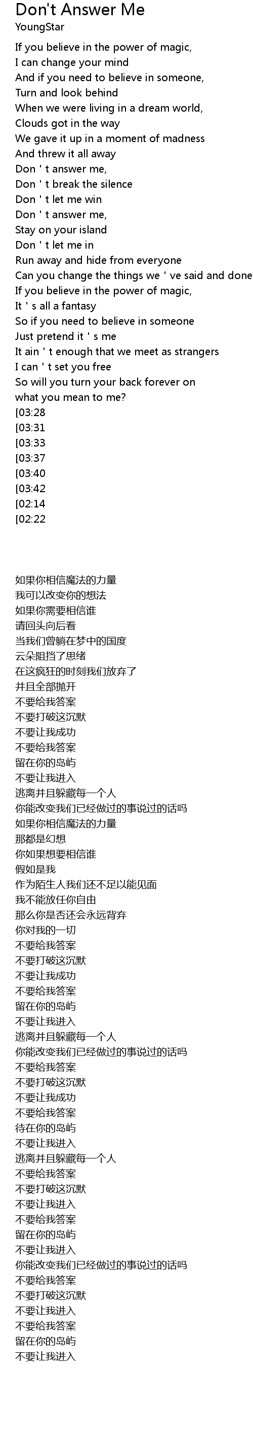 | [03:54][03:28][03:03][01:56] | Don't answer me, |