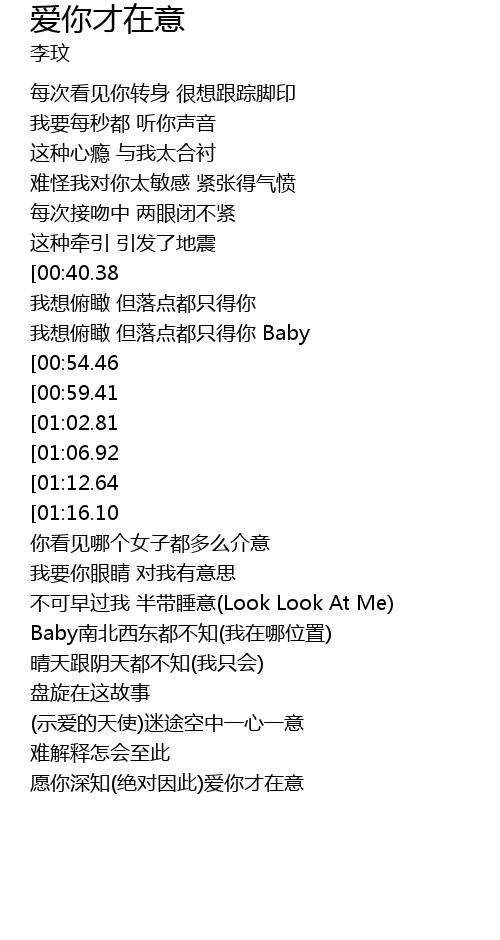 | [02:39.67][01:16.10] | 逐秒的数 爱你才在意 |