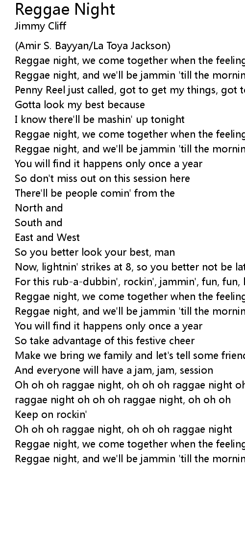 Oh oh oh raggae night, oh oh oh raggae night oh oh oh raggae night, oh oh oh raggae night oh oh oh raggae night, oh oh oh |