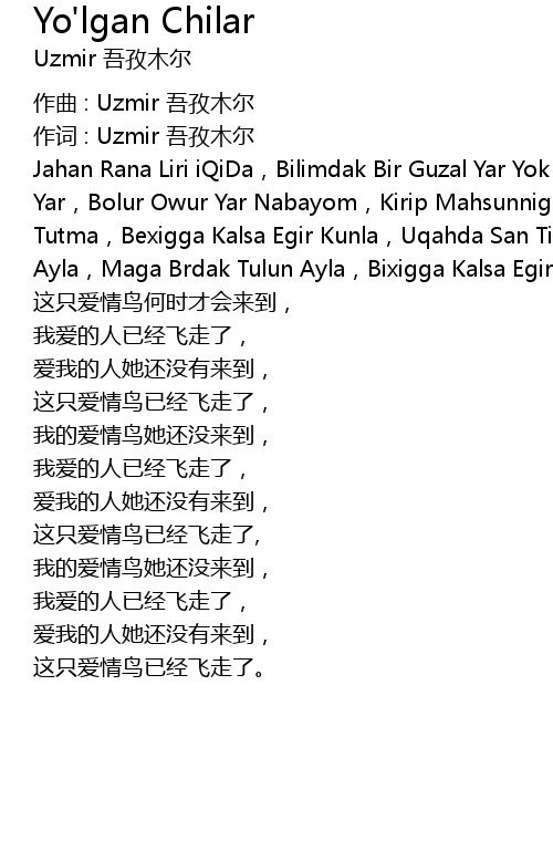 | zuò qǔ : Uzmir wú zī mù ěr | |