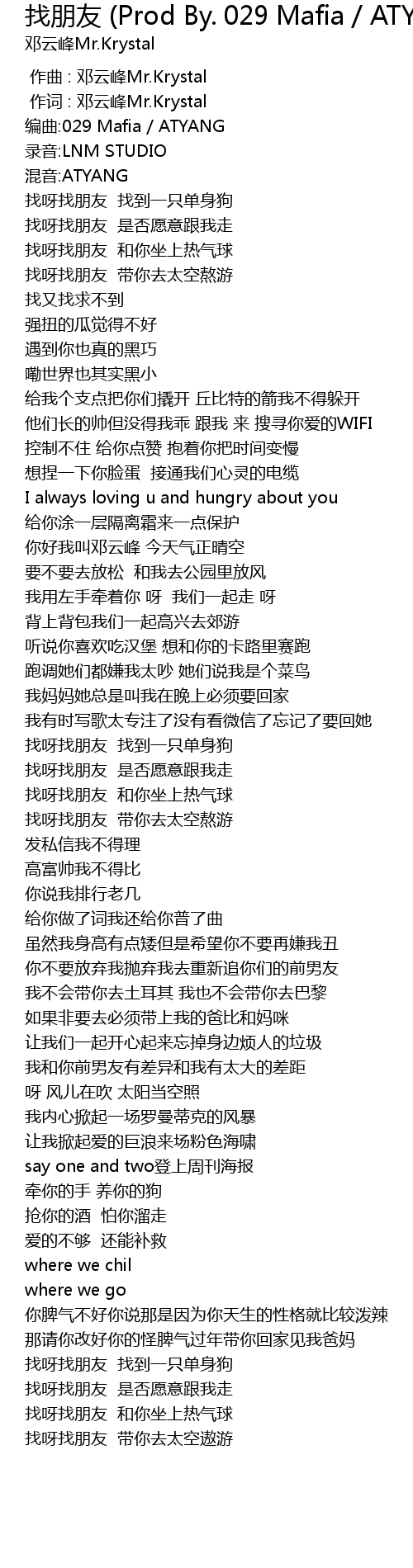 | Song | 找朋友 (Prod By. 029 Mafia / ATYANG) |
