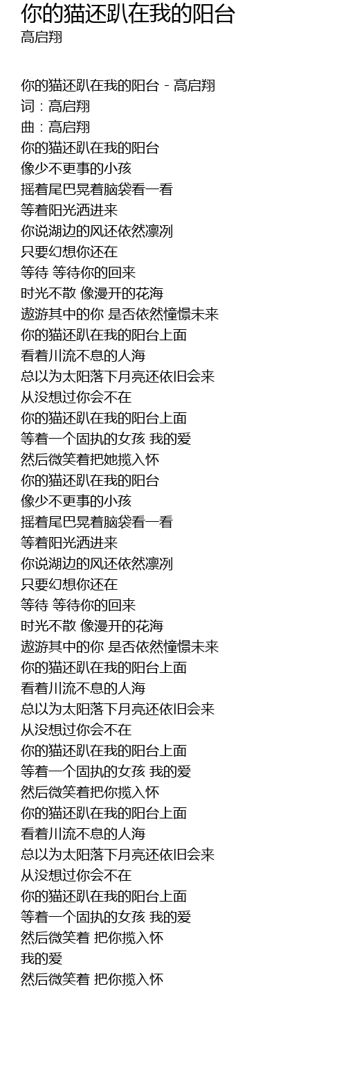 | 你的猫还趴在我的阳台 - 高启翔 | |