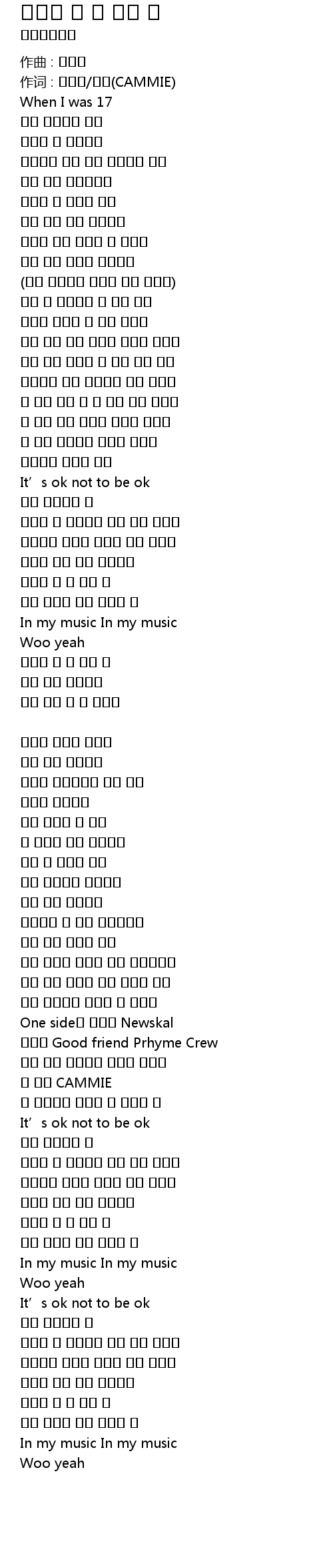 | 作词 : 최우빈/캐미(CAMMIE) | |