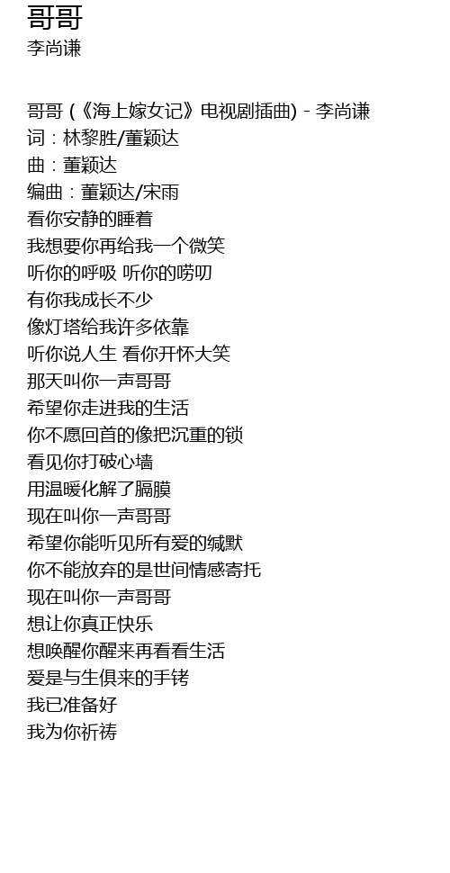 | 哥哥 (《海上嫁女记》电视剧插曲) - 李尚谦 | |